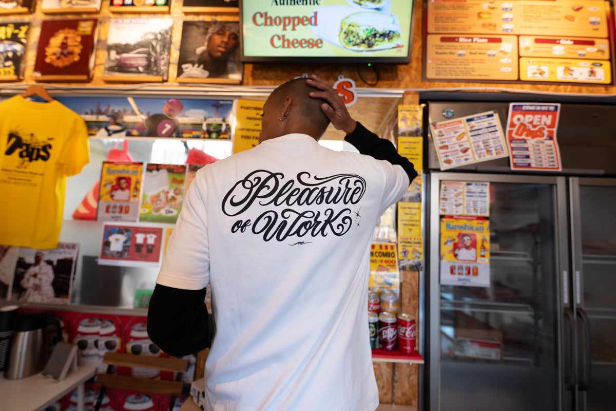 「架空の会社」というワークウェアブランドらしいテーマを軸に、様々な業種の世界観をグラフィックに落とし込む。第一弾目となる今回のテーマは「架空の造園会社」。休日はスケートボードやDJを楽しむ職人たちが、自分たちの会社である「粋刈造園」のオリジナルTシャツを仲間内で作ったという架空のストーリーをイメージしてグラフィックに落とし込んだ。他とは違うものづくりを追求するTS DESIGNの「粋がった」精神を表現したグラフィックTシャツは、ストリートテイストでありながらも和の雰囲気やポップさを取り入れている。 素材:綿100% モデル:180cm Lサイズ着用 グラフィック:シルクスクリーンプリント、転写プリント サイズネーム:転写プリント Graphic by Toshifumi Kiuchi