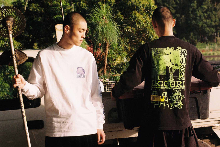 「架空の会社」というワークウェアブランドらしいテーマを軸に、様々な業種の世界観をグラフィックに落とし込んでシリーズ化させていく。第一弾目となる今回のテーマは「架空の造園会社」。休日はスケートボードやDJを楽しむ職人たちが、自分たちの会社である「粋刈造園」のオリジナルTシャツを仲間内で作ったという架空のストーリーをイメージしてグラフィックに落とし込んだ。他とは違うものづくりを追求するTS DESIGNの「粋がった」精神を表現したグラフィックTシャツは、ストリートテイストでありながらも和の雰囲気やポップさを取り入れており、幅広い層に着てもらえるようにデザインした。このTシャツを着て皆さんも「粋がって」、仕事や遊びに全力になってもらいたい。